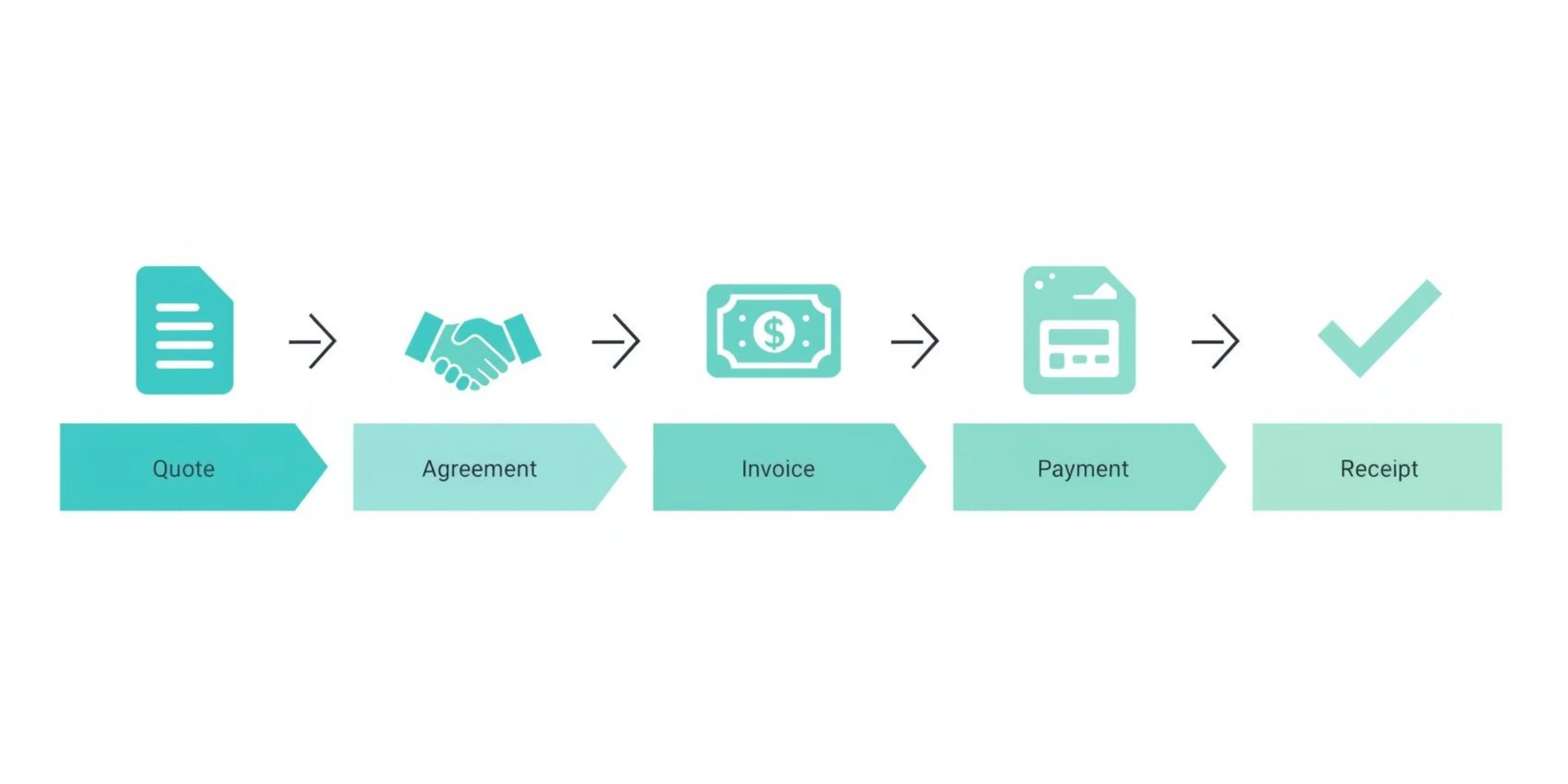 - The workflow is Quote → Work → Invoice → Payment → Receipt. Each document protects you differently.